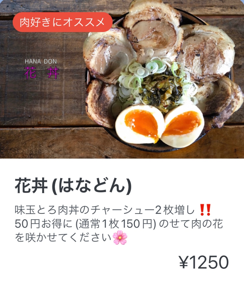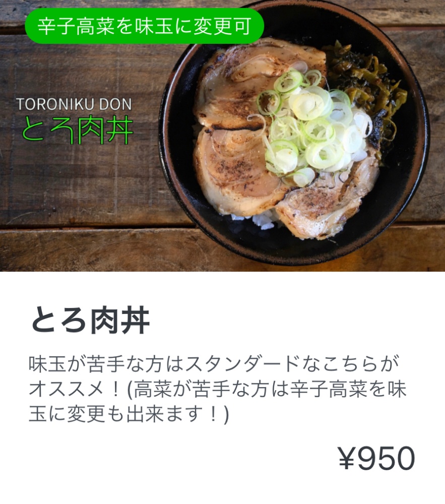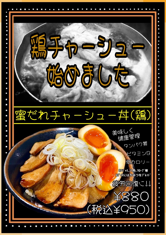 | 蜜だれチャーシュー丼(鶏) | 880円(税込950円) |
