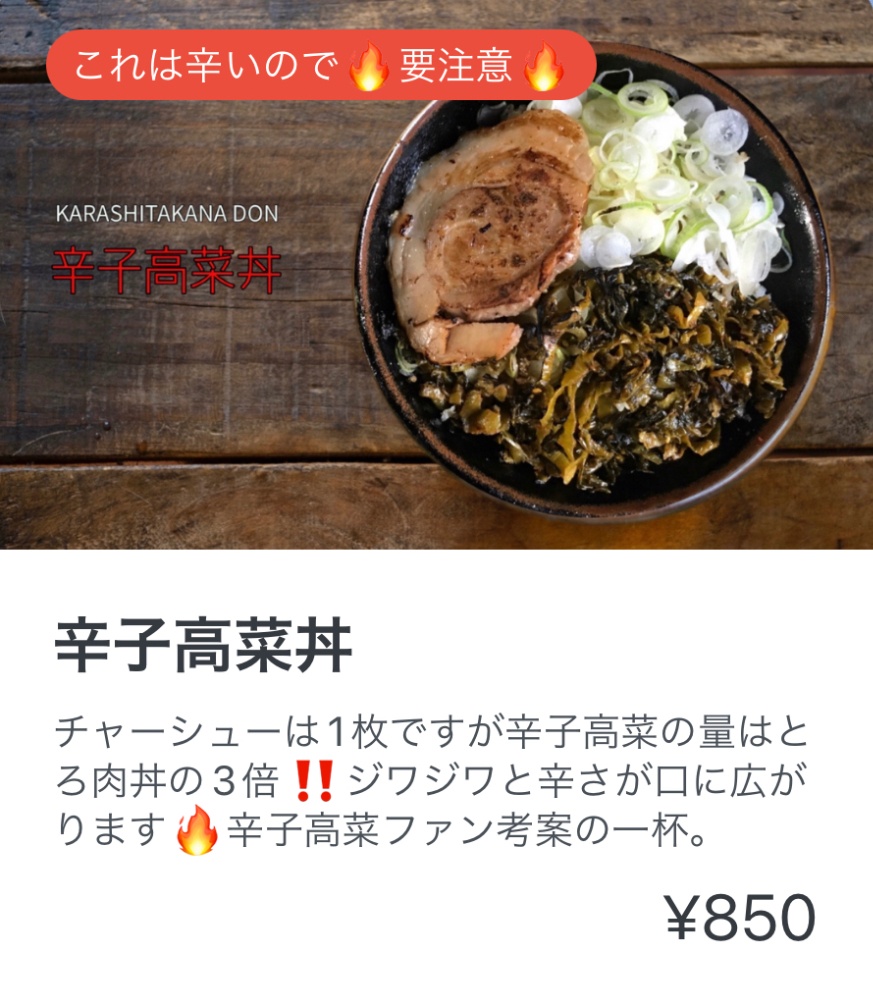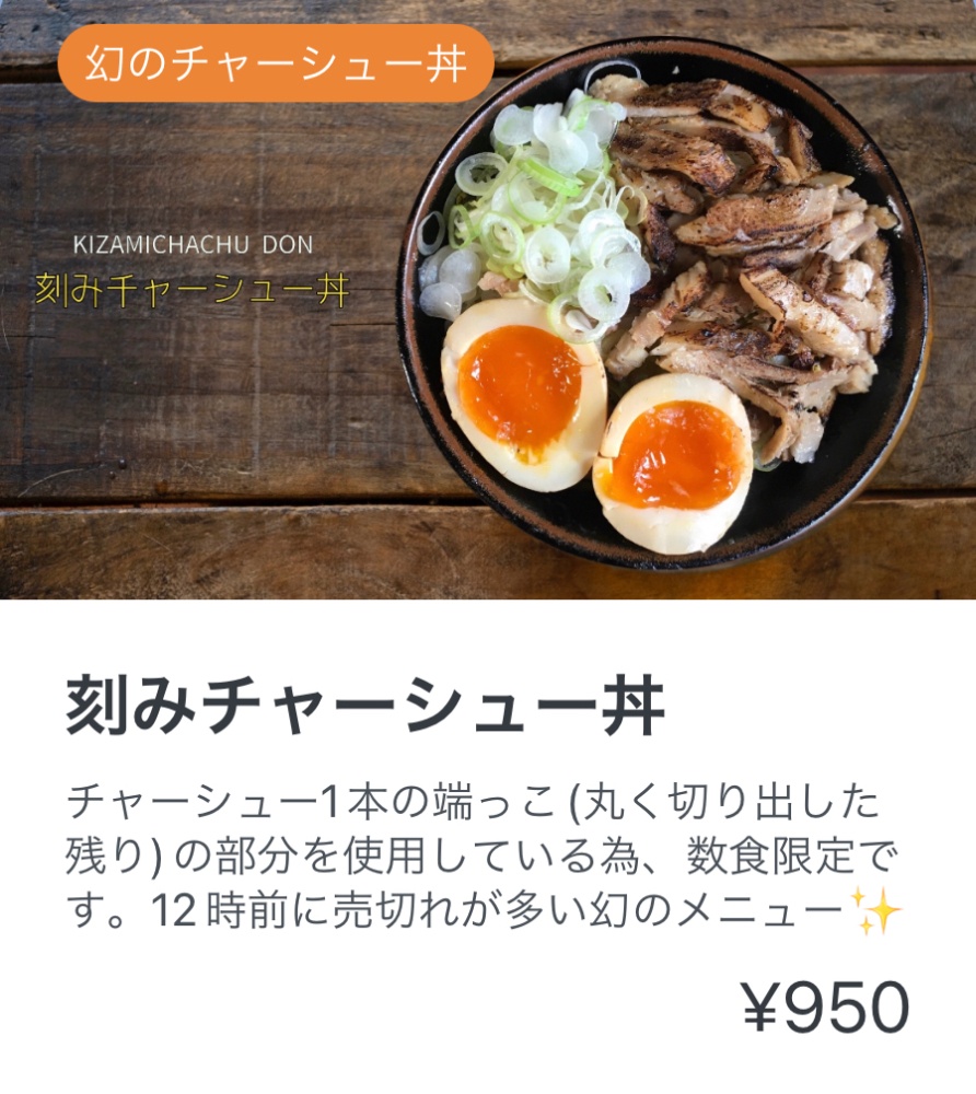 | 刻みチャーシュー丼 | 880円(税込950円) 数量限定 |
