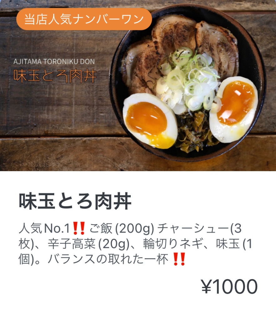 | 味玉とろ肉丼 | 926円(税込1000円) |